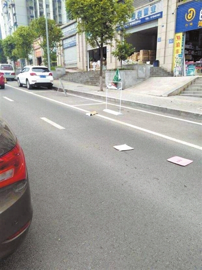 潜山路上一家店铺的老板告诉记者,之所以在自家店铺门口的公共停车位上摆放交通三角锥,确实是事出有因,“后面的小区里车位少,这个地方车流量又大,如果不摆点东西,别人就会来停车。我们经常要卸货,如果车位被其他车辆占了,卸货车只能停在路中间,这样会更加影响交通。”