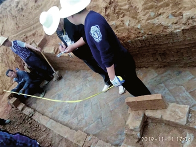 近日,嘉鱼县官桥镇米埠村8组,一新建通村公路的施工挖机,意外挖出一座古墓。墓长4.5米,宽1.44米。经县4名文物专家初步鉴定:此墓是东汉时期的一座古墓,距今已有1700多年的历史。墓室一角存有2尺左右的空墙缺口,猜疑此墓被盗所为。当地政府已安排4名民工协助县文物专家清理土层。