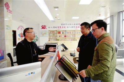 图为蒲圻办事处和尚岭社区工作人员向纪检监察干部介绍整治“新衙门”作风情况。
