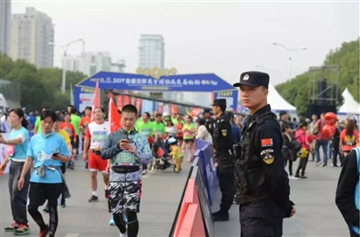 11月24日,2019咸宁国际温泉马拉松赛在市人民广场鸣枪开跑,16000余名跑客激情竞逐。针对赛事人员多、规模大、关注度高等特点,咸宁公安全警动员、全力以赴,成立安保工作指挥部,分指挥调度、综合协调、现场安保、赛道安保、应急处突、无人机反制等16个大组,投入2885名警力,出动各类警用装备200余台,全体班子成员分片包保,深入指挥部、赛道沿线、起终点实地督导,各县市区公安局长一线调度、一线指挥,及时消除隐患,确保赛事万无一失,成为“咸马”一道靓丽的“警色”。