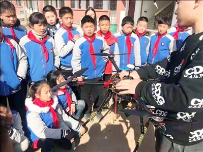 3日,在赤壁市黄盖湖镇中心小学上空,三架无人机从操场上飞起。6月以来,咸宁职院科协已到赤壁市黄盖湖镇,开展类似送科技下乡活动9场。课程不仅涉及拼装机器人、3D打印、太阳能发电等高科技项目,还走进农业基地,解决蔬菜种植、小龙虾养殖、水利灌溉、土地平整等技术问题。 通讯员 万虎 摄