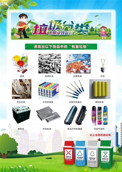 将有害垃圾单独投放至“有害垃圾”容器内或固定回收点,投放时不应弄破有害垃圾的容器或包装物,灯管、温度计等易碎的有害垃圾应用纸或布包裹后投放。