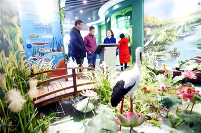 12月3日,咸安区向阳湖国家湿地公园科普宣教展馆,游客跟随讲解员参观湖地生态动植物微景观。该馆是青少年自然教育拓展基地,投资300多万元,融入4D元素,于11月中旬建成开馆,以立体化、沉浸式体验提高科普的教育性、生动性和观赏性。