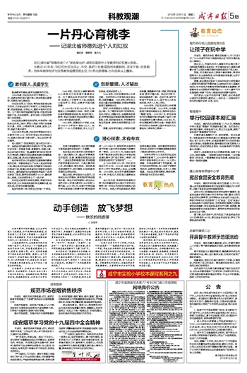 接着,他向学校建议,并和科任教师商量,调整教学内容、进度,同时组建体育、美术兴趣小组。经过多方努力,班级面貌焕然一新。这年中考,咸宁市体育中专录取26人,其中有9人来自他的班,另外1人考入艺校。