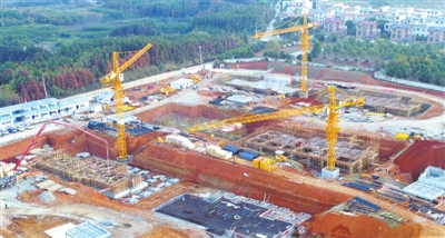 昨日,咸安区官埠桥镇泉湖村泉湖水岸安置社区,基础工程正在紧张建设。
