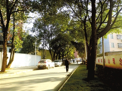 12月12日,记者走进咸安区温泉街道办事处岔路口社区化纤小区,第一印象是安静、整洁。小区门口的林荫道旁是两列大树,笔直的树干有一人环抱粗,茂密的枝丫诉说着小区的年代感。