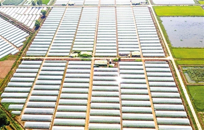 17日,无人机航拍的赤壁市赤壁镇东柳村高效农业基地。