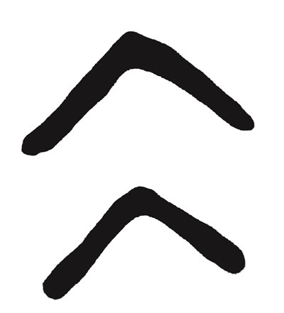 和所有的古汉字一样,“冬”,继续变化着,有这么写的(见图4),也有将那绳子上的两个球简化成一横——(见图5),而后又在下面加了两个折笔“仌”,成(见图6)。这个(见图7)就是“冰”最古老的写法,古人的观察和描述不无道理,水结成冰后体积会增大,表面凸出成拱状。也有简化成两横、两点,这两点又渐渐成了指代寒冷的偏旁,诸如冰、凉、冷、冻、寒等等。