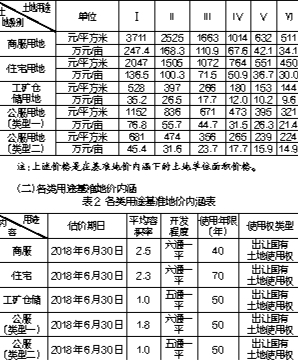 注:本次基准地价是在上述估价期日,设定上述容积率、开发程序、使用年限和使用权类型等条件下的区域平均价格。公服用地类型一主要包括机关团体用地、新闻出版用地、教育用地、科研用地、医疗卫生用地、社会福利用地、文化设施用地、体育用地八个二级地类;公服用地类型二主要包括公园与绿地、公用设施用地两个二级地类。