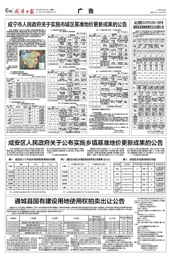 咸安区人民政府关于公布实施乡镇基准地价更新成果的公告
