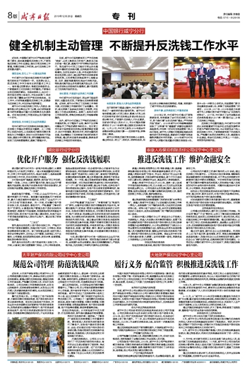 中国银行咸宁分行 健全机制主动管理 不断提升反洗钱工作水平