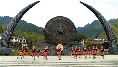 循着热情奔放的歌声,遥望千年广场,一支穿着瑶族盛装的队伍正在表演拍打舞,整齐的动作,铿锵的音响,一群外地来客饶有兴致地拍照欣赏。