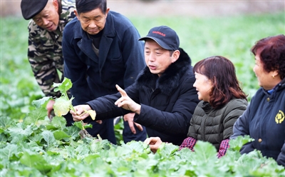 27日,咸安区汀泗桥镇赤岗村,农技专家高敏在给当地农民传授蔬菜管理技术。