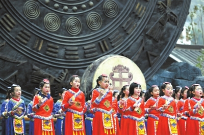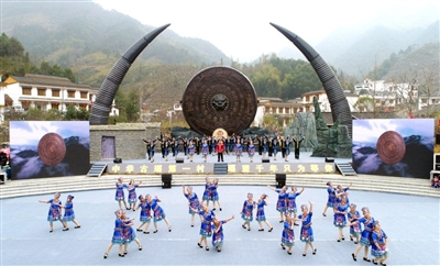 “张打铁,李打铁,打到张家门前落大雪……”随着欢快的歌谣响起,一队身穿瑶族服饰的男女,走上遥望千年广场大舞台,表演瑶族拍打舞。