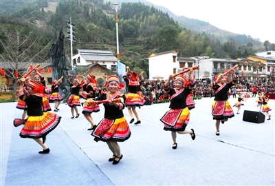 喧天的锣鼓,悠扬的歌声,矫健的舞步……昨日,“中华古瑶第一村”——通城县内冲瑶族村张灯结彩,洋溢着节日的喜庆。