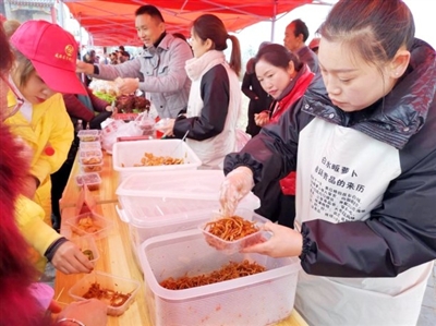 本报讯 记者吴文谨、特约记者胡剑芳、李星、通讯员吴东东、冯超报道:“今天真开心,一个小时就卖出了1000多元的萝卜,刚刚一车萝卜快卖光了,我岳父正在地里抓紧拔!”日前,记者来到咸安区高桥镇白水村,四组村民陈志强正满脸笑容地操作电子秤卖萝卜。