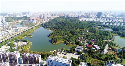 日前,无人机拍摄的温泉城区绿意盎然、风景如画。鸟瞰咸宁,山水相依,城林相间,城在山中,水绕城转,楼在景中,人在画中。近年来,我市不断绿化美化城区环境,提升城市整体形象,先后被授予“全国绿化模范城市“国家森林城市”等。 咸宁日报全媒体记者 袁灿 摄