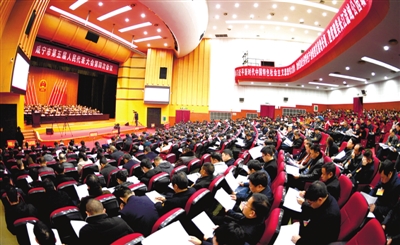 上午8时30分,孟祥伟宣布,咸宁市第五届人民代表大会第四次会议开幕!全体起立,高唱国歌。