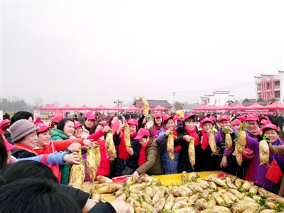 为了拓宽农产品销售渠道,带动贫困户增收,当天咸安区启动万名市民下乡消费扶贫系列活动,来自城区和武汉、嘉鱼、通城等地的千余名游客到现场打年货。