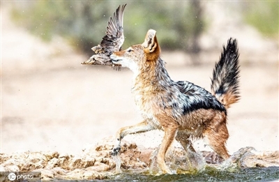 近日,在南非卡拉哈迪跨界国家公园,一只凶恶的豺展开了一场捕鸟大作战,它悄悄靠近毫无戒心的沙鸡,使尽浑身解数,最终成功捕捉到猎物。