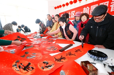 当日,山东青岛市即墨区潮海街道银华社区开展“邻里和谐一家亲 翰墨飘香迎鼠年”新春联谊活动,社区居民欢聚一堂,写对联、送福字、画国画,喜庆祥和迎春节。