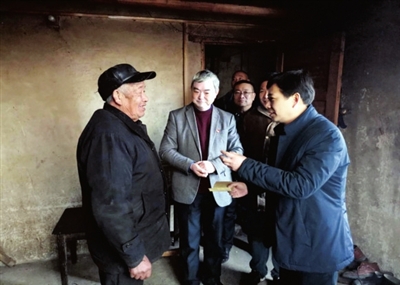 本报讯 通讯员廖静报道:1月10日,咸宁金投集团集团党委书记、董事长王兴电带队赴通城县马港镇金山村,走访慰问该村80户贫困户,向他们送上大米、食用油等慰问物资,并致以节日的美好祝愿和问候。