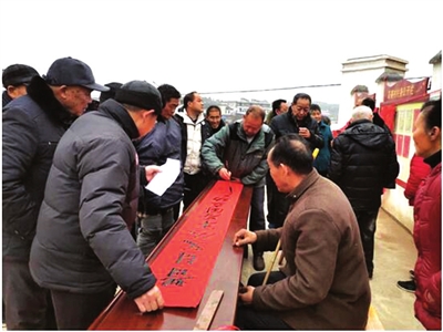 近日,咸安区诗联学会的成员们,前往马桥镇高赛村开展送对联下乡活动,受到当地群众的热烈欢迎。