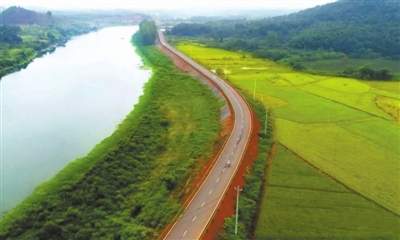 咸安汀泗黄荆塘村产业路全长9.1公里,是围绕产业基地修建的环形公路,沿路设置骑行道,打造了自然生态、路产相融的美丽经济交通走廊。