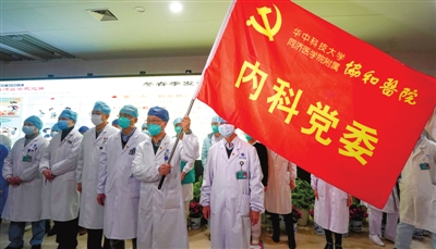 1月22日,在华中科技大学同济医学院附属协和医院,医护人员加入抗击新型冠状病毒感染的肺炎突击队。突击队由该院党委组建,以党员为主体。