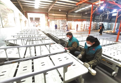 1月30日早上8:00,经过130余名提前返岗员工4天的突击生产,厚福医疗装备有限公司如期完工的约1000张医疗病床发往武汉。