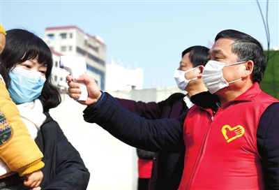 30日,咸宁日报社干部职工在夹皮沟职工小区对相关人员进行体温检测。为做好新型冠状病毒感染的肺炎疫情防控工作,连日来,我市各个部门围绕“内防传播 外防输入”目标,加强对本职工小区人员的登记和体温检测工作,同时对外来人员采取拉网排查方式,逐户进行入户走访,确保“不漏一户、不漏一人”,全力做好疫情防控。 咸宁日报全媒体记者 袁灿 摄