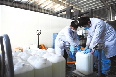 当前,新型冠状病毒感染的肺炎疫情防控形势严峻,为保障全市防疫物资供应,该公司紧急召回员工加班生产消毒液,助力打赢疫情防控阻击战。