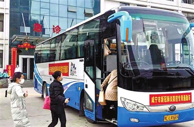运输保障组负责疫情防控期间交通保障。从1月28日起,先后征用5辆大型客运车辆接送市第一人民医院和云南援咸医务人员上下班,征用1辆商务车接送医学专家赴各县市开展医学指导。2月10日起,征用40辆出租车用于工作人员应急出行,运送病例密切接触者。临时开通咸宁—岳阳点对点汽车运输专线,接在咸宁工作、生活且滞留在省外的人员回家,累计接回省外滞留人员252人。2月18日起,组织从武汉、孝感、黄冈回咸的货车司机进行肺部CT检查,对近期从107国道贺胜查验站返咸人员进行面对面回访。