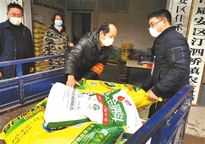 2月29日,咸安区汀泗桥镇佳禾农业服务中心,技术员在为农户配送农资。连日来,我市农业部门一手抓好疫情防控,一手抓好春耕生产,积极采取线上销售、线下配送的方式,让村民“足不出户”就能享受点对点的农资配送服务。