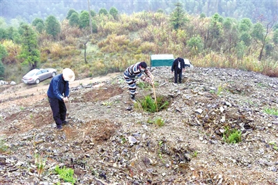 3月3日,在咸安桂花镇南川村四组连片的40余亩荒山,村民刘纯根带着10余位村民在山上栽种油茶苗。近期,桂花镇在做好疫情防护的前提下,组织技术人员做好线上线下技术指导和服务,有序开展造林绿化工作。 通讯员 吴剑 孔栋良 摄