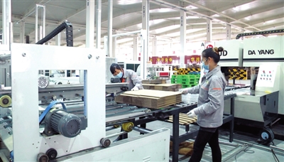 18日,崇阳县天城工业园,湖北众盼科技包装有限公司生产车间内,高速宽幅瓦楞纸板生产线正在加紧生产。 咸宁日报全媒体记者 马丽娅 通讯员 陶然