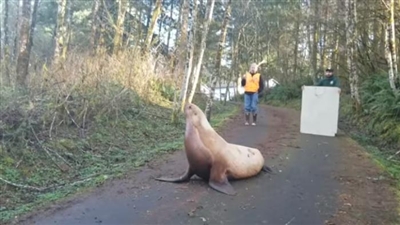 日前,有一只“迷路”的雌海狮,在美国华盛顿州考立兹郡的乡间小路游荡,州野生动物保护部门和郡警闻讯赶来,费上好一番功夫才把它哄进板条箱,并且把它带回了水源地。当地媒体称,这一只雌海狮重约600磅(约合272公斤)至700磅(378公斤),被发现时距离最近水源考立兹河(Cowlitz River)超过3.2公里。