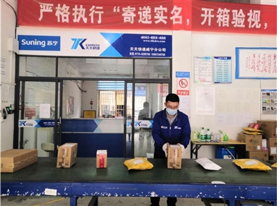 周勇举了一个例子:一个包裹从外省发往咸宁,在每个分拣中心都要进行消毒。配送之前,还会再次消毒。