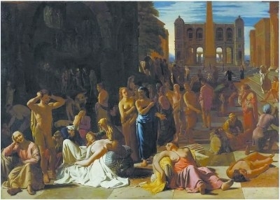 史学家修昔底德在《伯罗奔尼撒战争史》记载:“瘟疫是从比雷埃夫斯进入雅典的……比雷埃夫斯是雅典的港口,也是唯一食物及补给的来源。地中海东部的许多地区也有发生瘟疫,但影响较小”。雅典成为疫情的重灾区,几乎有一半的人都病倒了,瘟疫摧毁了人们对生活的希望。修昔底德无限悲痛地记录着当时的惨剧:“这是一场巨大的浩劫,以至于人们不知道接下来会发生什么,对任何法律规则都变得漠不关心……”