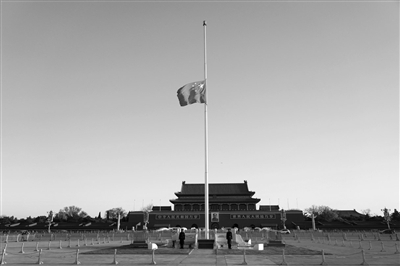 4月4日,北京天安门广场降下半旗,表达对抗击新冠肺炎疫情斗争牺牲烈士和逝世同胞的深切哀悼。