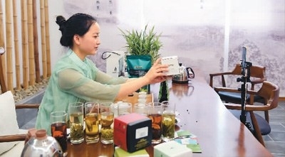 “感谢各位老铁们观看,接下来有请我们的非遗传承人凌泽杰老师为大家讲解一下什么叫做‘窨制’。”3月28日上午,在吴裕泰的淘宝直播间里,主播和非遗传承人一起为观众介绍产品、讲解茶文化,在镜头前给大家展示茶形、茶底、汤色。