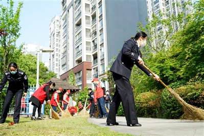 在十六潭社区龙泉佳苑小区党支部书记李万定的号召下,一场以“自己的环境自己护,自己的家园自己守”为主题的“爱家卫生运动”正如火如荼开展。这个只有152名党员的小区,支部活动参加人数达到了200多人,基本每家每户都至少派出了一人,有的甚至全家出动,清杂物、扫落叶、捡白色垃圾,干得不亦乐乎。在金龙花园小区,小区支部带领大家开展环境卫生清扫后,共同种下7棵爱心树,由小区居民认养,意在共同守护美好家园。
