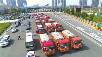 3月13日,为了支持武汉抗疫,20辆专业水产运输车集结成队,满载着来自嘉鱼、咸安的20万斤活鱼抵达武汉。
