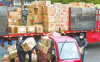 1月30日晚,河北金沙河面业集团紧急调运68吨价值35万余元的小麦粉、挂面等物资,13个小时行驶了1000公里路,送来急需的生活物资;