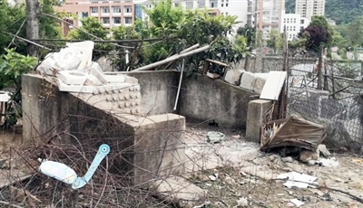这里成了“被遗忘的角落”:堆积腐败的落叶、无人清扫的垃圾、杂物污水堵塞的沟渠……与大门外的整洁街景格格不入,也给住在附近的居民带来生活上的不便。