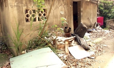 走到居民楼前,只见墙壁上到处都是写着“管道疏通”和电话号码的牛皮癣,十分刺眼。房子中间的过道里,有杂物、垃圾、还有鸡屎,卫生状况很不乐观。
