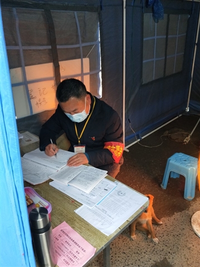 一个简易帐篷,一张桌子,二个凳子,便成了小区值守点。王全兴和值守人员每天对进出人员仔细询问,详细登记。