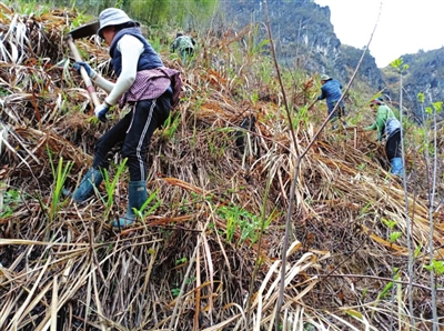 看着一批批的种植技术人员往荒山上跑,看着一车车的苗木在荒山上发芽生根,南洞村的村民们看到了发展希望。