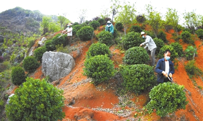 13日,通山县黄沙铺镇文科苗圃基地,当地农民在进行苗木管理。