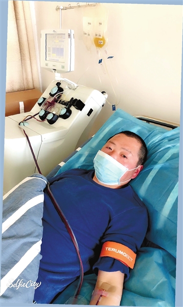 躺在蓝色的献血床上,周浩不停地捏放手中的红色橡胶球,以增加血液的流速,虽然已经不是第一次献血小板,但他还是出现了恶心、嘴角发麻等症状。